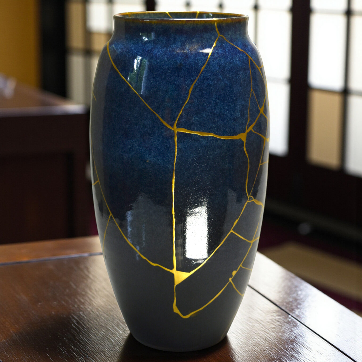 Published September 14, 2025 at 2560 × 2560 in Blue kintsugi vase with bark