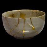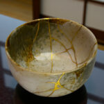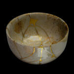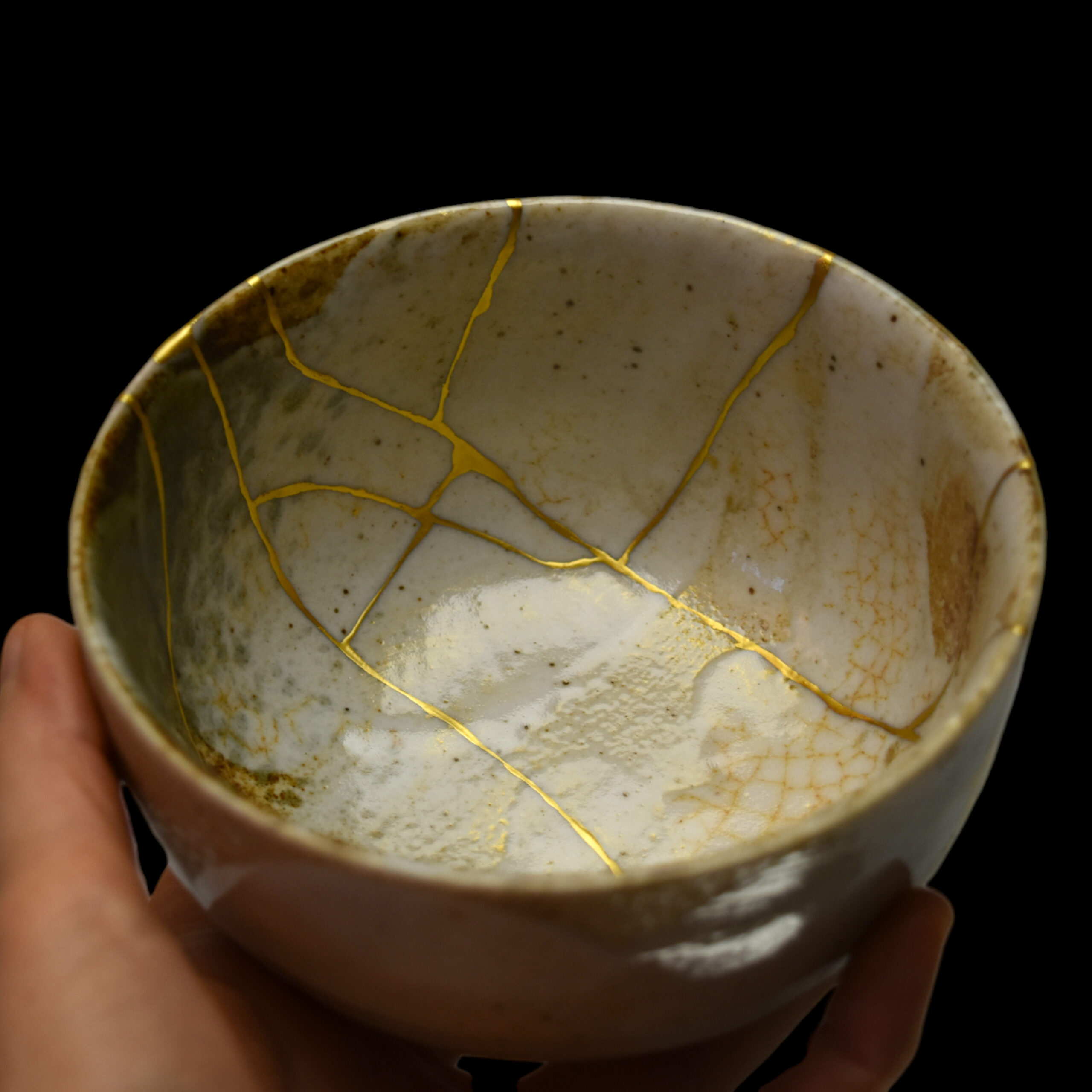 Once broken, this bowl has been magnificently resurrected by the ancient technique of kintsugi. Each fracture has been meticulously repaired and enhanced with pure 24-carat gold, transforming its imperfections into a network of luminous lines—a testament to its history and resilience.