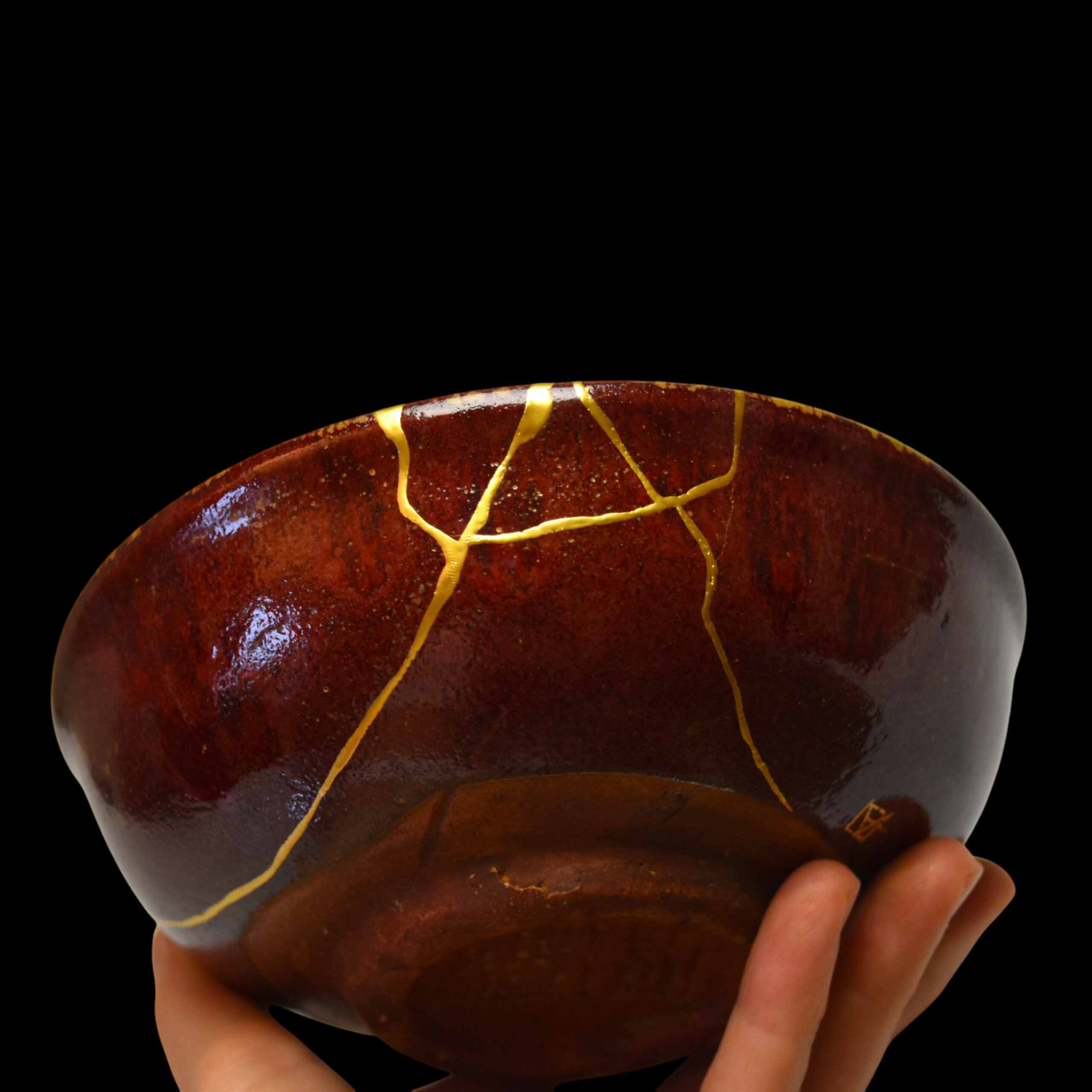 Once broken, this bowl has been magnificently resurrected by the ancient technique of kintsugi. Each fracture has been meticulously repaired and enhanced with pure 24-carat gold, transforming its imperfections into a network of luminous lines—a testament to its history and resilience.