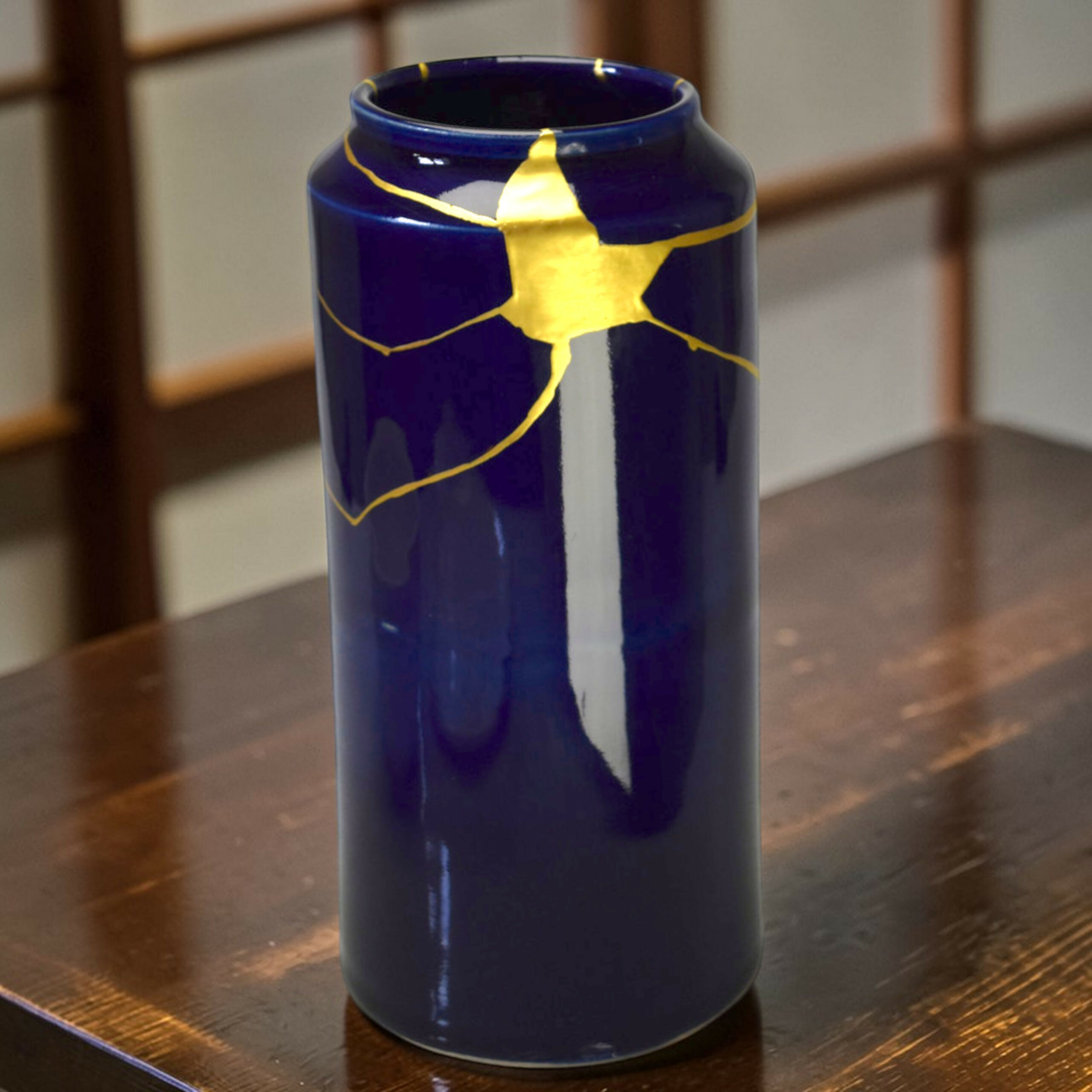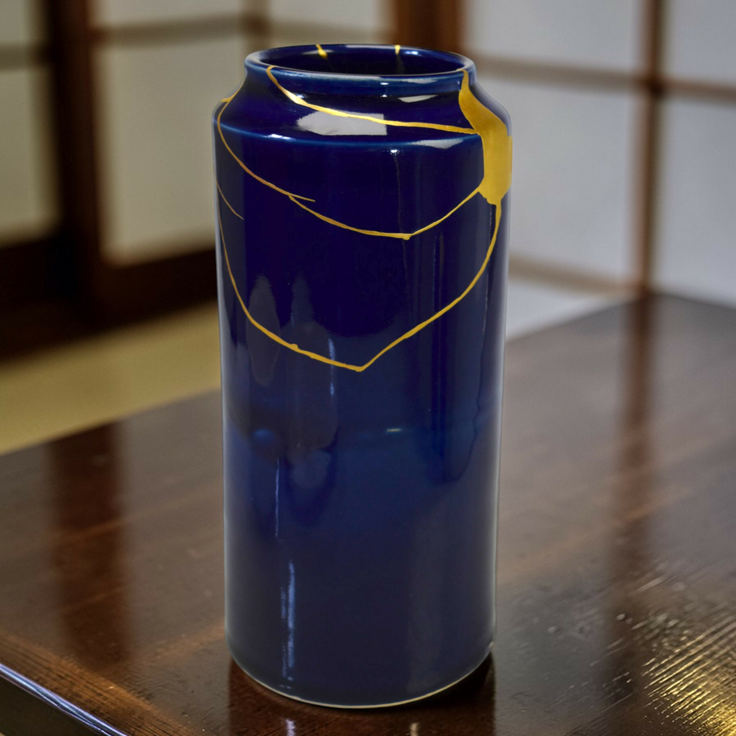 Stoneware Cylinder Vase – Deep Midnight Blue & Kintsugi Renaissance (24k Gold)